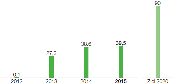 - 2015 verkaufte Klimaschutzprodukte vermeiden 530 Millionen Tonnen CO2-Äquivalente bei ihrer Nutzung beim Kunden