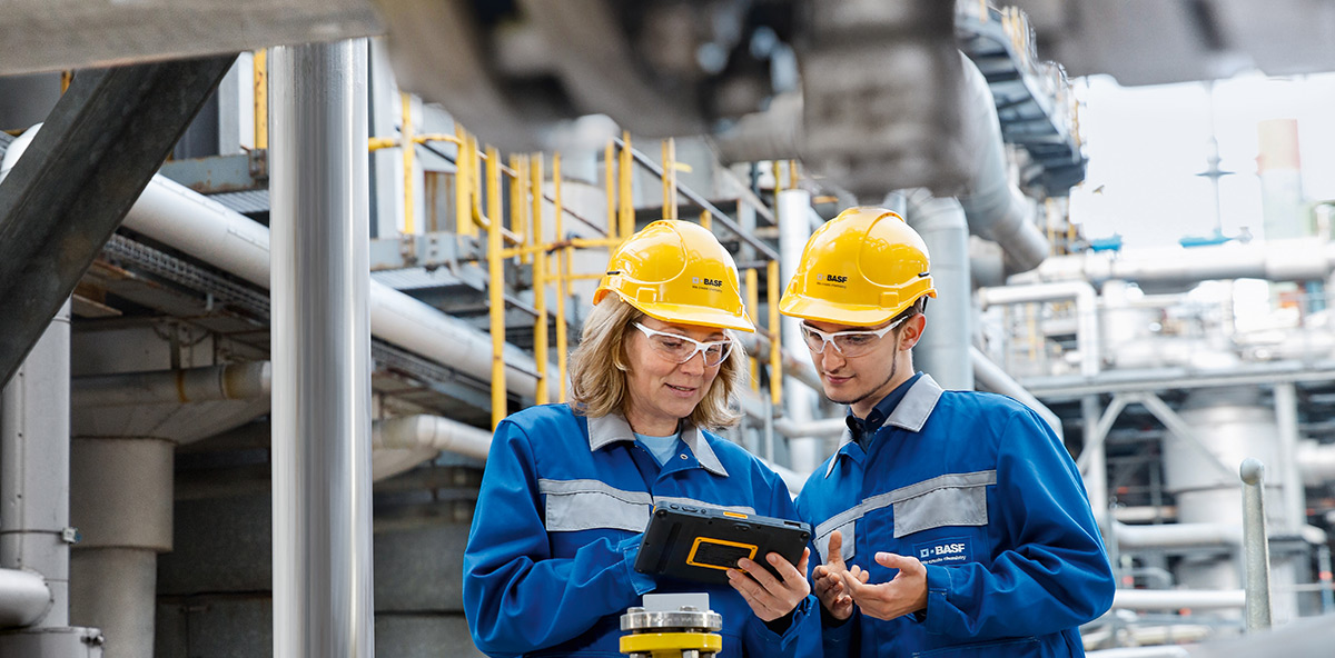 Unter dem Stichwort „BASF 4.0“ treiben wir unsere digitale Transformation voran: In Anlagen am Standort Ludwigshafen haben Mitarbeiter über spezielle Tablets und QR-Codes jederzeit Zugriff auf Informationen.