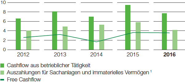 - Cashflow aus betrieblicher Tätigkeit deutlich, Free Cashflow leicht unter Vorjahr