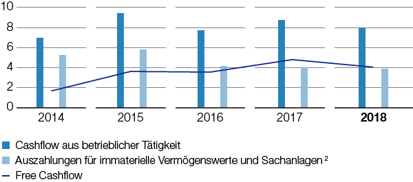 3 Für 2017 wurde das EBIT nach Kapitalkosten um den Anteil der Öl-und-Gas-Aktivitäten vermindert aufgrund ihres Ausweises als nicht fortgeführtes Geschäft. Für die Jahre 2014 bis 2016 wurden die Werte nicht angepasst. Zur korrespondierenden Seite wechseln