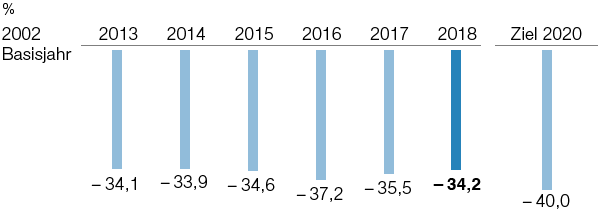 Reduzierung von Treibhausgasemissionen je Tonne Verkaufsprodukt im BASF-Geschäft ohne nicht fortgeführtes Öl-und-Gas-Geschäft